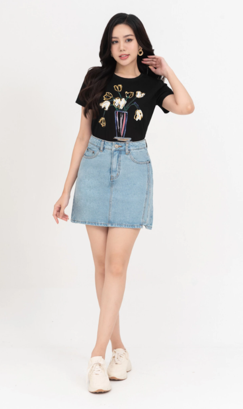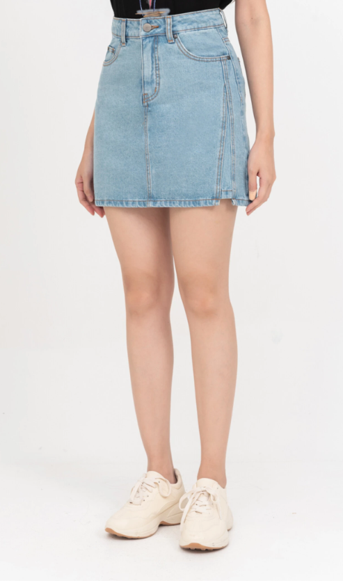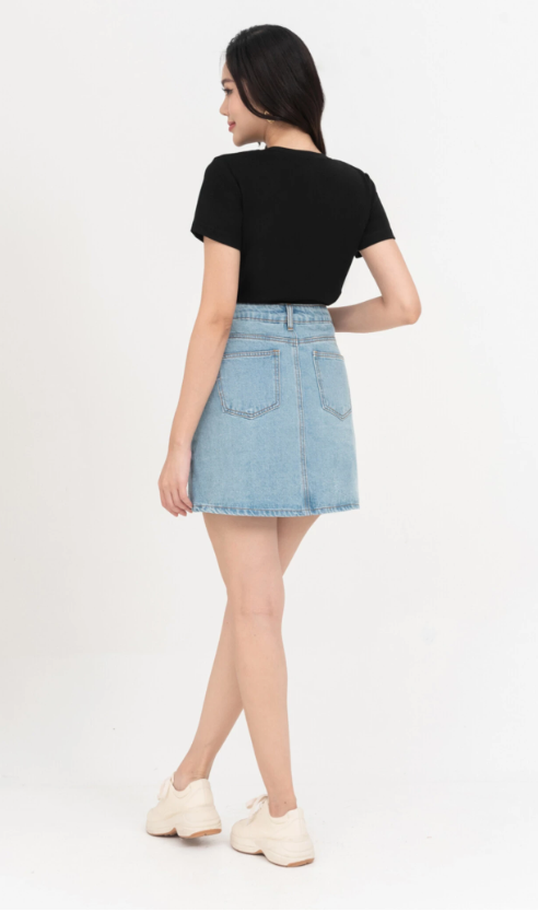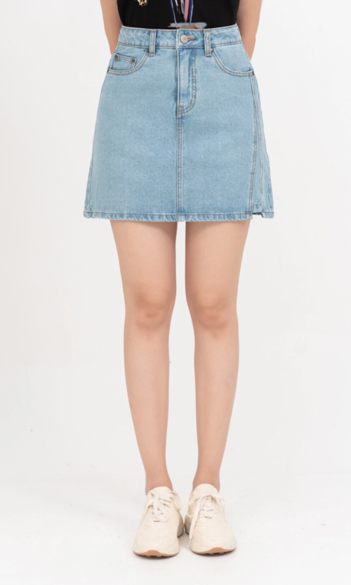 Chân váy jean chữ A cạp cao trẻ trung