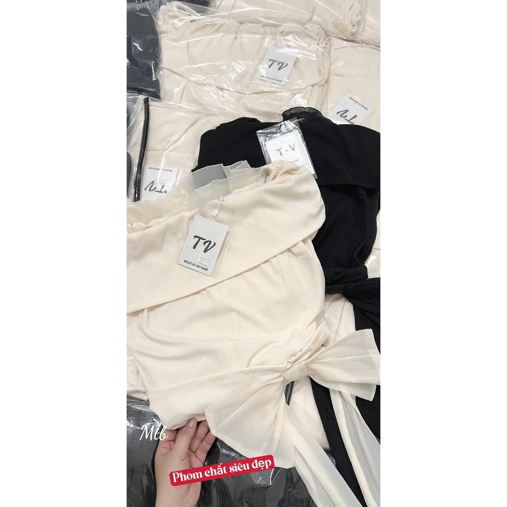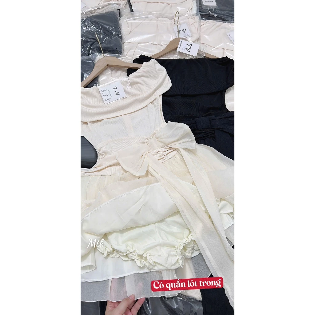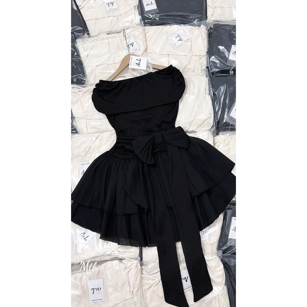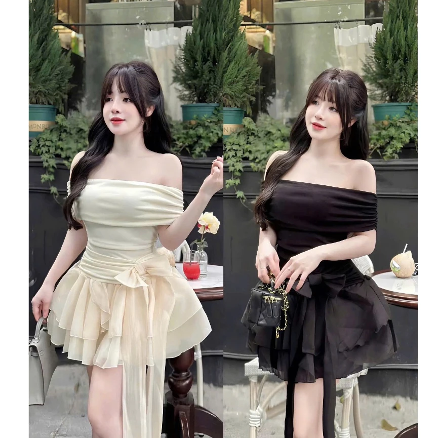 Đầm Trễ Vai Váy Tầng Phối Nơ – Phong Cách Tiểu Thư Nữ Tính, Tôn Dáng
