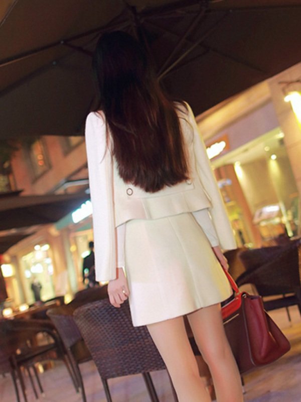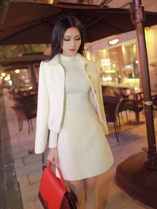 Set bộ thiết kế áo khoác ngắn+ chân váy zuyp màu trắng cao cấp
