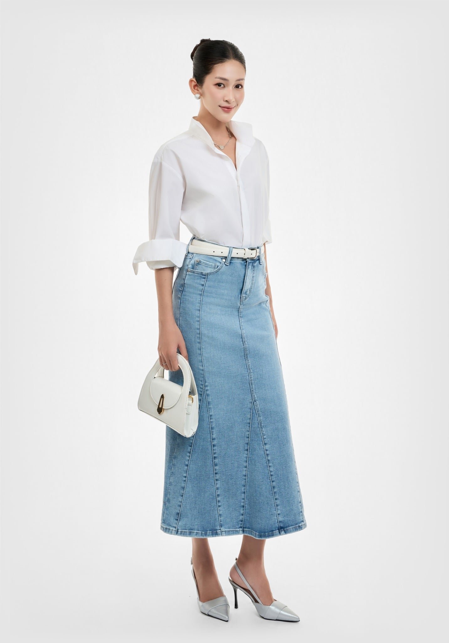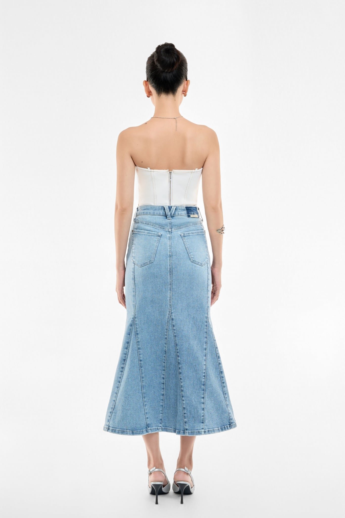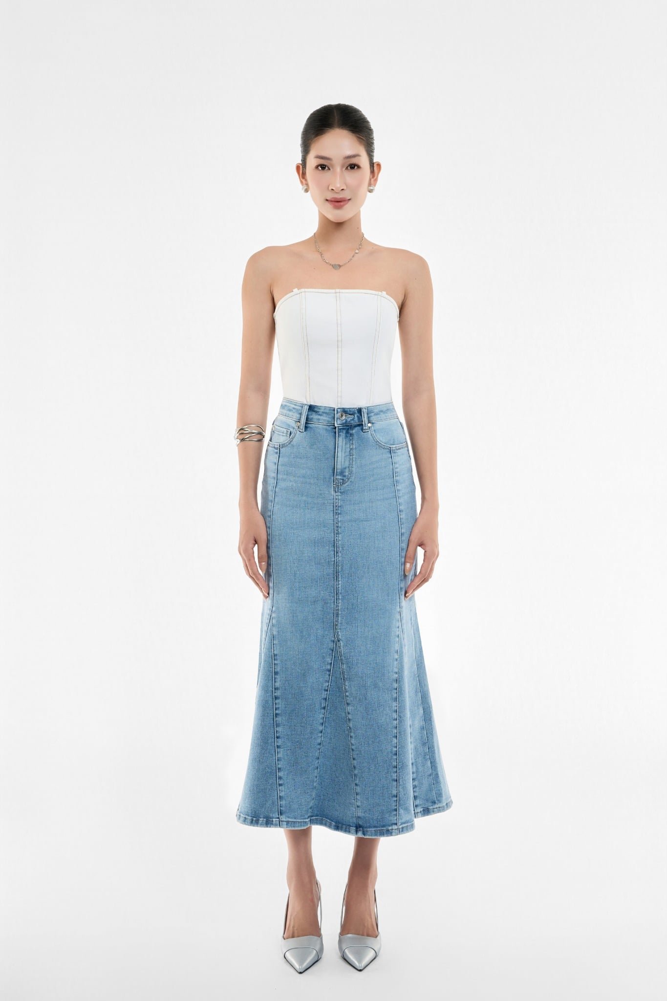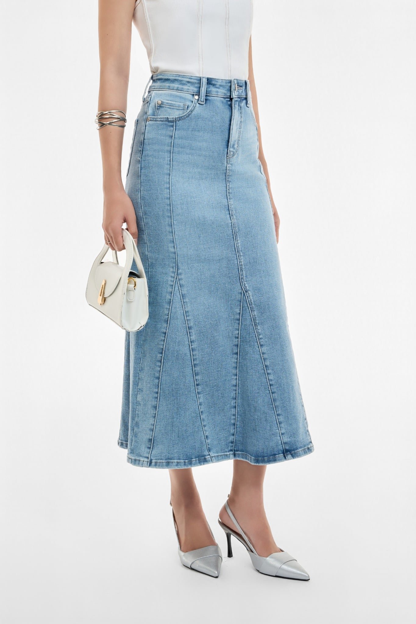VÁY DENIM MIDI LIGHT BLUE FORM ĐUÔI CÁ