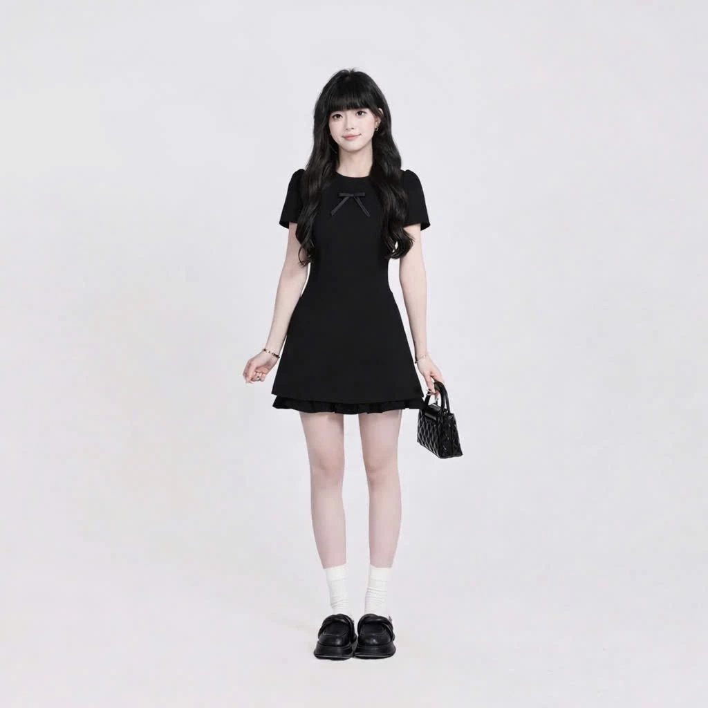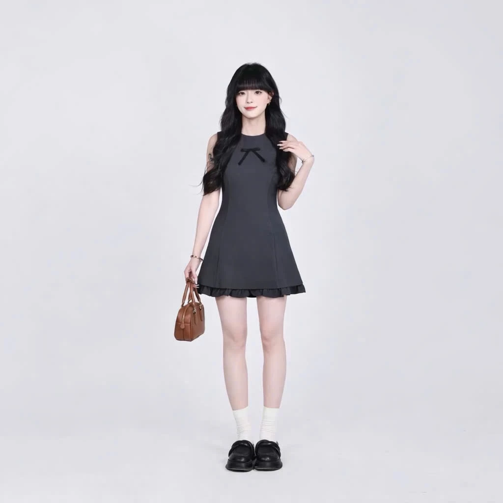 Váy Nữ Dáng Chữ A Cổ Phối Nơ – Phong Cách Tiểu Thư Thanh Lịch